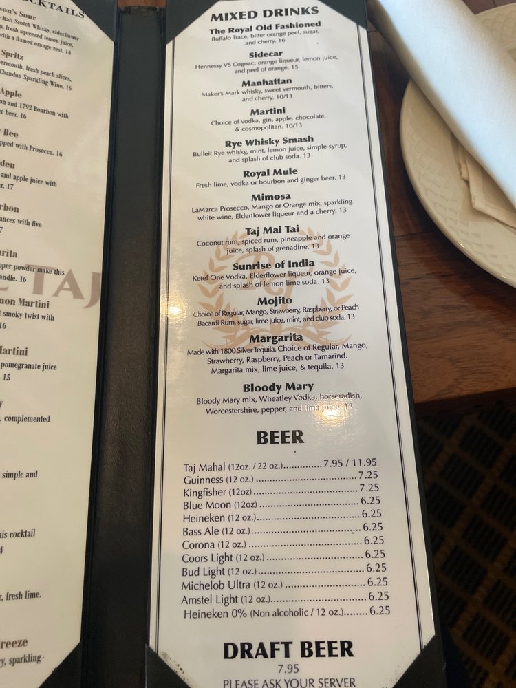 Royal Taj Menu